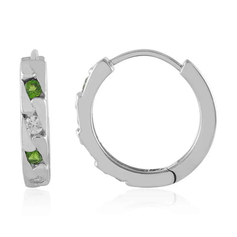 Entdecken Sie Eleganz mit diesen atemberaubenden Silberohrringen mit russischem Diopsid. Diese Ohrringe aus platiniertem 925er Sterlingsilber sind mit leuchtend grünem Diopsid und funkelnden Zirkonen aus Kambodscha besetzt. Sie eignen sich perfekt, um jedem Outfit einen Hauch von Raffinesse zu verleihen, egal ob Sie eine formelle Veranstaltung oder ein zwangloses Beisammensein besuchen. Diese vielseitigen Ohrringe sind eine exquisite Ergänzung für jede Schmucksammlung.