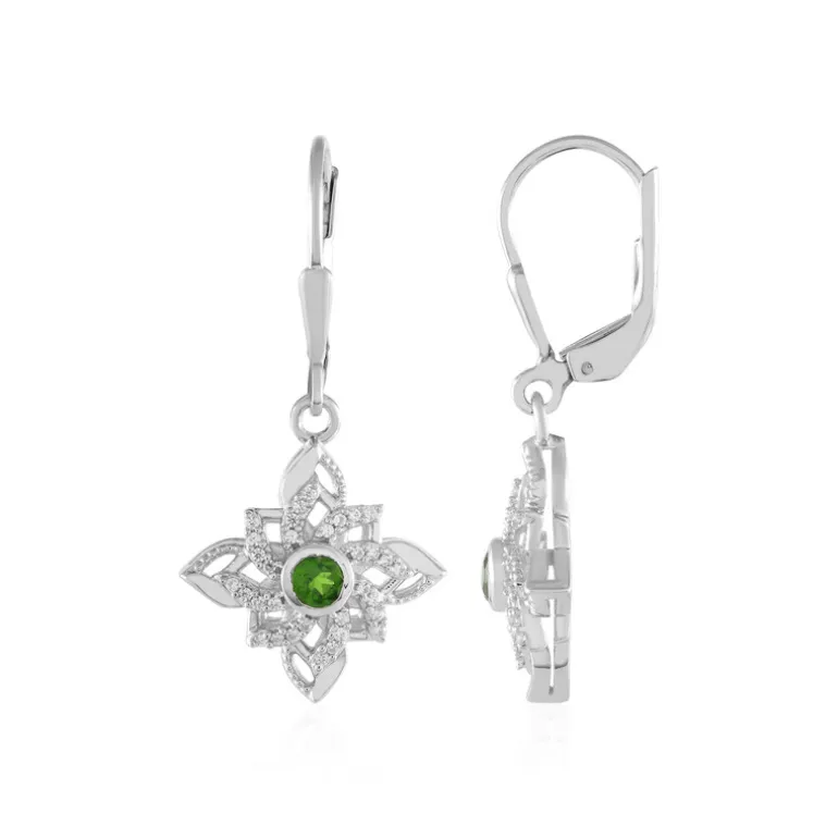 Entdecken Sie die Eleganz dieser russischen Diopsid-Ohrringe aus Silber. Die leuchtend grünen Diopsid-Edelsteine mit insgesamt 0,431 Karat werden von funkelnden Zirkonen aus Kambodscha wunderschön akzentuiert. Diese 33 mm großen Ohrringe sind aus platiniertem 925er Sterlingsilber gefertigt und strahlen Raffinesse aus. Perfekt, um Abendgarderobe aufzuwerten oder Alltagsoutfits einen Hauch von Luxus zu verleihen.