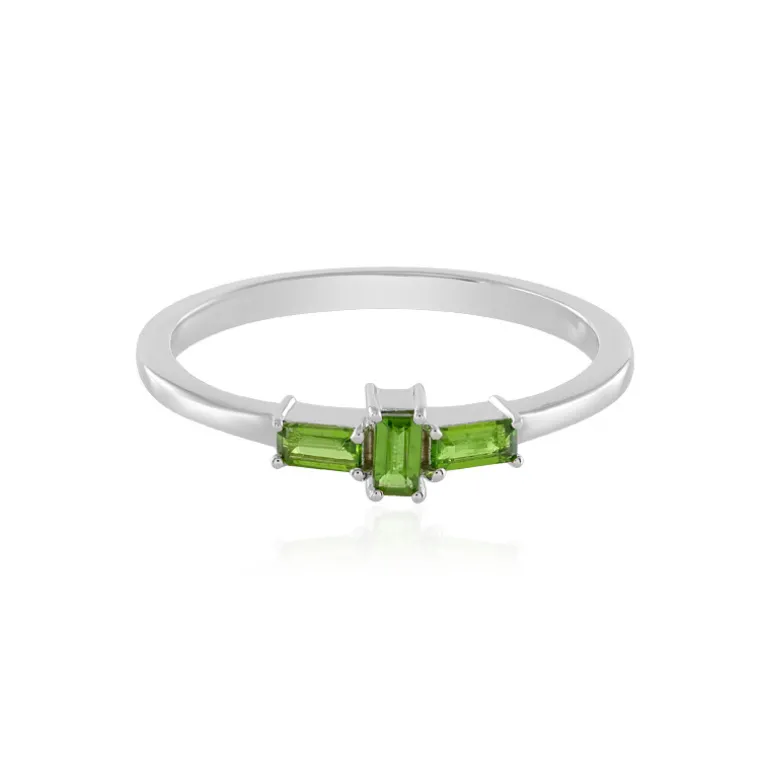 Entdecken Sie die Anziehungskraft dieses schicken Rings aus platiniertem 925er Sterlingsilber mit drei leuchtenden russischen Diopsiden mit einem Gesamtkaratgewicht von 0,333ct. Jeder Stein, der meisterhaft in einer achteckigen Stufenform geschliffen wurde, misst etwa 4 x 2 mm und hat einen satten grünen Farbton, der Sie in seinen Bann ziehen wird. Mit einer Ringgröße von 21×19 mm ist er eine elegante Ergänzung sowohl für den Alltag als auch für besondere Anlässe. Er ist perfekt, um einen Farbakzent zu setzen, und passt sowohl zu Freizeit- als auch zu Abendkleidern.