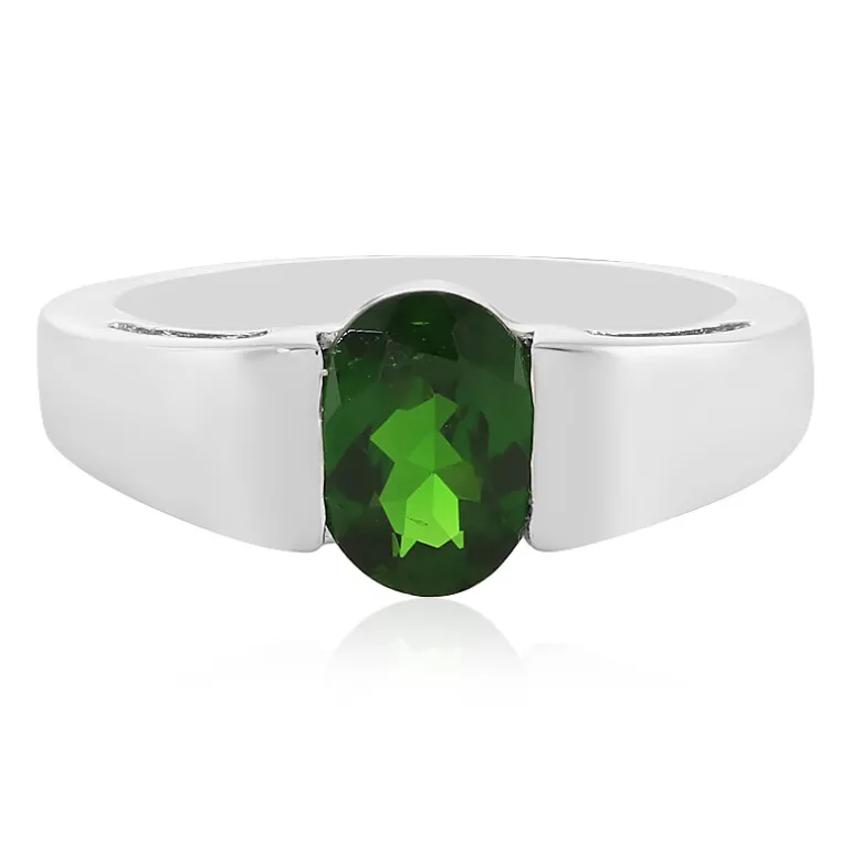 Entdecken Sie die Anziehungskraft dieses raffinierten Rings aus russischem Diopsid mit einem lebendigen Edelstein von 1,165 Karat und einem bezaubernden ovalen Schliff. Eingefasst in hochwertiges 925er Sterlingsilber, strahlt dieses schicke Stück Eleganz mit einem schlanken, modernen Design aus, das die Essenz der zeitgenössischen Mode einfängt. Dieser Ring ist ebenso vielseitig wie schön und eignet sich perfekt als Statement-Stück bei einer formellen Veranstaltung oder als strahlender Akzent für Ihren Alltagsstil. Gönnen Sie sich den Luxus dieses exquisiten Schmuckstücks und verleihen Sie Ihrer Schmucksammlung einen Hauch von Farbe.