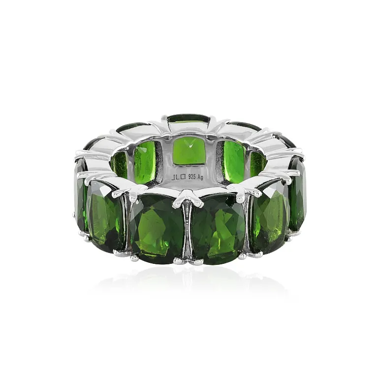 Entdecken Sie die Anziehungskraft dieses bezaubernden Silberrings aus russischem Diopsid, der einen Strauß brillant facettierter Edelsteine enthält. Jeder grüne Diopsid, der für seinen intensiven grünen Farbton geschätzt wird, ist so gefasst, dass er das Licht einfängt und reflektiert und so ein faszinierendes Funkeln erzeugt. Das Band aus 925er Sterlingsilber bietet Langlebigkeit und ein elegantes Finish, das jeden Stein sicher umschließt. Dieser Ring ist perfekt, um sowohl am Tag als auch am Abend einen Farbtupfer zu setzen und lädt dazu ein, sich der Schönheit edler Edelsteine hinzugeben.