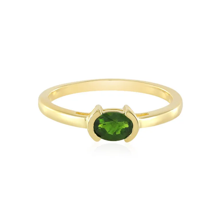 Entdecken Sie den lebendigen Charme dieses exquisiten Rings aus russischem Diopsid mit einem Edelstein von 0,757 Karat im Ovalschliff, gefasst in glänzendes, vergoldetes 925er Sterlingsilber. Sein schmales Band und der satte Grünton fangen die Essenz der Anmut ein und machen ihn zu einem idealen Accessoire für legere und formelle Anlässe. Egal, ob Sie tagsüber an einer Veranstaltung oder abends an einer Gala teilnehmen, dieser Ring wird Ihrem Ensemble einen Hauch von Raffinesse verleihen.