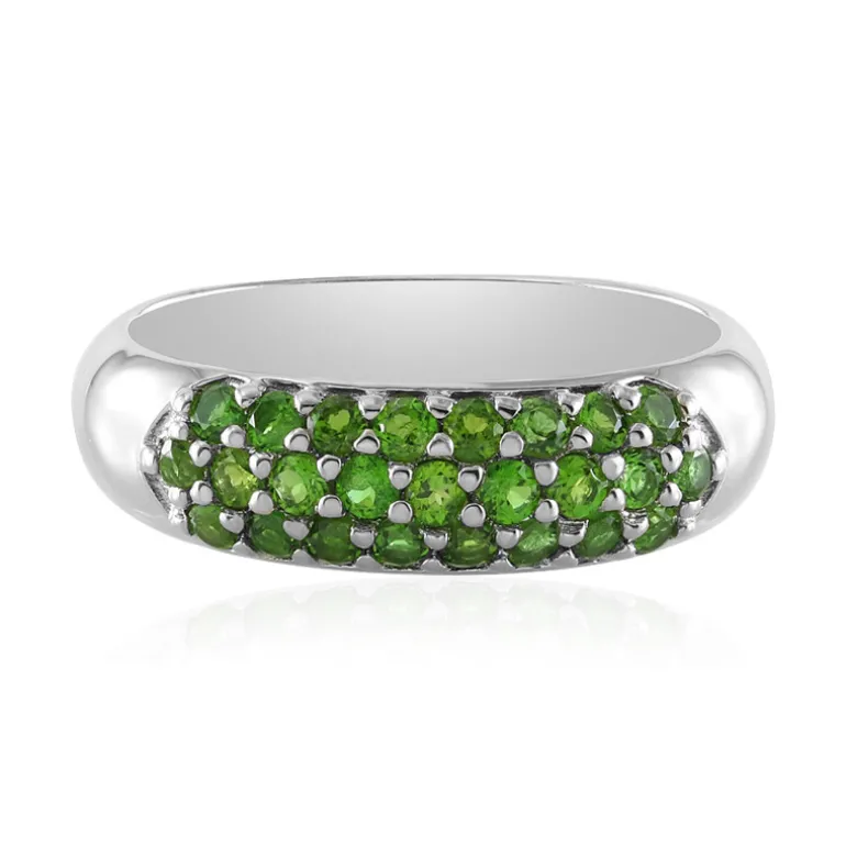 Dieser bezaubernde Ring enthält 25 russische Diopside mit insgesamt 0,667 Karat. Er ist in 925er Sterlingsilber gefasst und mit einer glänzenden Beschichtung versehen, die Eleganz und modernes Flair verbindet. Der leuchtend grüne Farbton der rundgeschliffenen Edelsteine macht ihn zu einem atemberaubenden Schmuckstück. Perfekt zum Ausgehen oder für einen raffinierten Tageslook. Kombinieren Sie ihn mit den passenden Ohrringen für ein komplettes Ensemble.