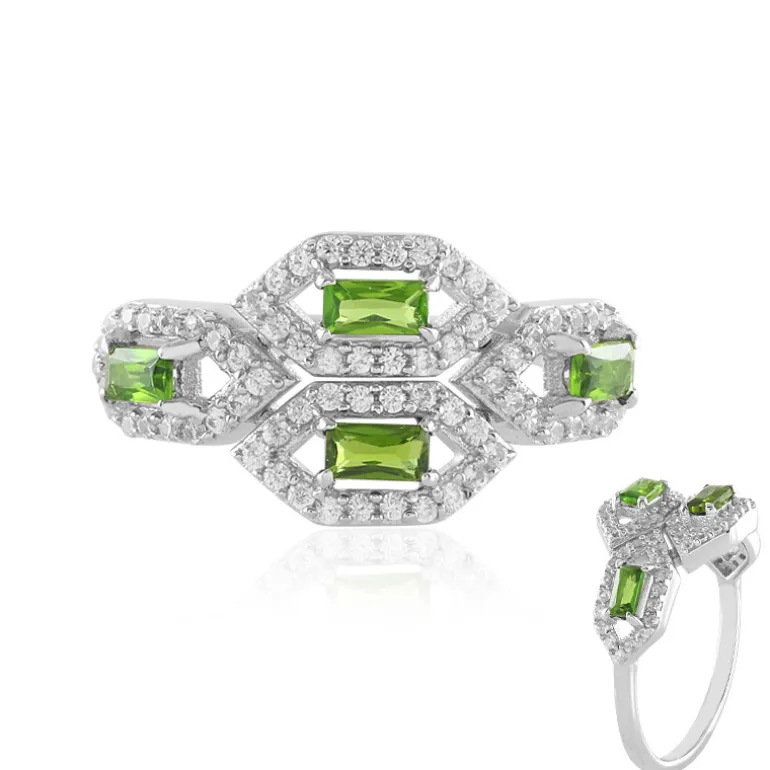 Dieser exquisite Ring ist eine Symphonie aus Glanz und Farbe mit russischen Diopsid-Edelsteinen, die in Baguetteform geschliffen und in ein Bett aus funkelnden Zirkon-Akzenten aus Kambodscha eingefasst sind. Der Ring ist aus hochwertigem 925er Sterlingsilber mit einer glänzenden Platinbeschichtung gefertigt und wiegt ca. 2,85 g. Er bietet einen angenehmen Tragekomfort und ist gleichzeitig ein Blickfang. Er eignet sich ideal für anspruchsvolle Anlässe oder als luxuriöses Geschenk und passt perfekt zu eleganter Abendgarderobe oder verleiht Ihrer Berufskleidung einen Hauch von Glanz.