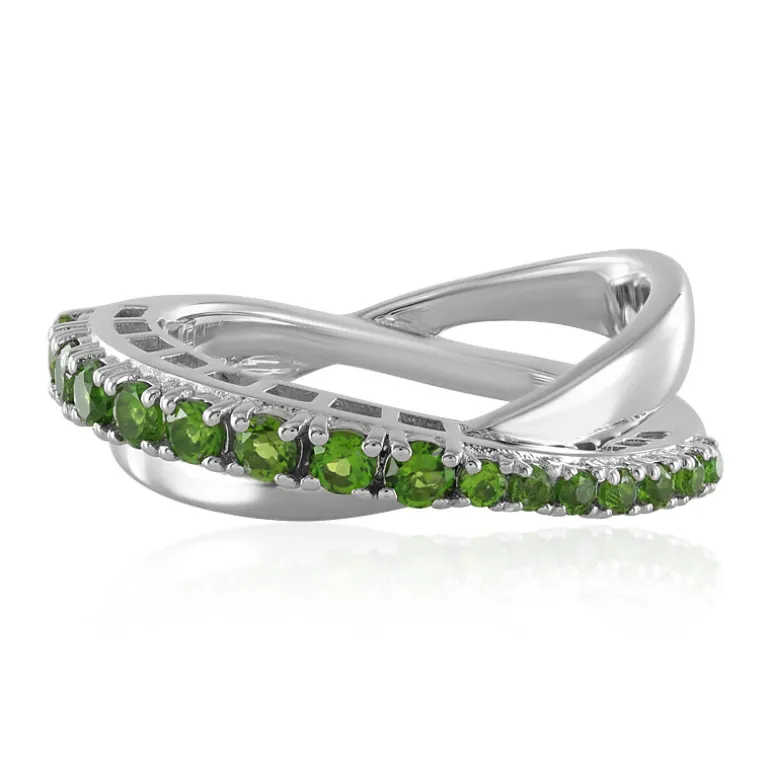 Entdecken Sie die lebendige Anziehungskraft dieses Rings mit russischem Diopsid, einer Symphonie von Grüntönen, gefasst in glänzendes, platiniertes 925er Sterlingsilber. Mit einem Gesamtgewicht von 0,836 Karat präsentiert dieser Ring ein harmonisches Design im Rundschliff, das Charme ausstrahlt. Die filigrane Anordnung der Diopsid-Steine ist ein echter Blickfang, der mühelos die Essenz der modernen Eleganz einfängt. Dieser Ring eignet sich perfekt als Farbtupfer für die Abendgarderobe oder als funkelnder Akzent für den Alltag und steht für Stil und Finesse.