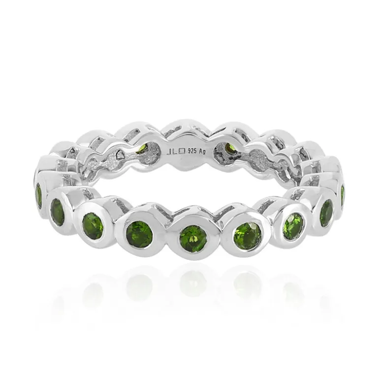 Dieser bezaubernde Ring aus Sterlingsilber ist mit üppig grünen russischen Diopsid-Edelsteinen besetzt, die in ein schickes, modernes Ewigkeitsdesign eingefasst sind. Die ineinander greifenden Kreise verleihen ihm einen Hauch von geometrischer Eleganz und machen ihn zu einem vielseitigen Accessoire für legere und formelle Anlässe. Jeder Stein wurde sorgfältig nach seinem leuchtenden Farbton und seiner Reinheit ausgewählt, um ein ebenso dauerhaftes wie schönes Schmuckstück zu schaffen. Kombinieren Sie ihn mit einem legeren Ensemble, um einen Farbakzent zu setzen, oder mit Abendgarderobe, um einen eleganten Look zu vervollständigen.