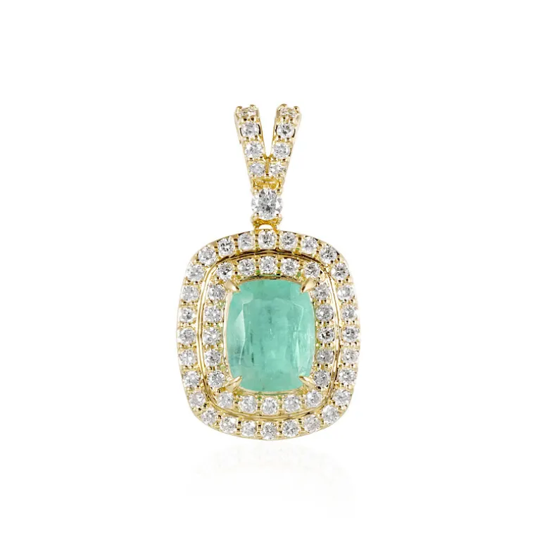 Russischer 2ct Smaragd 14K Gold Anhänger, 56 Diamanten