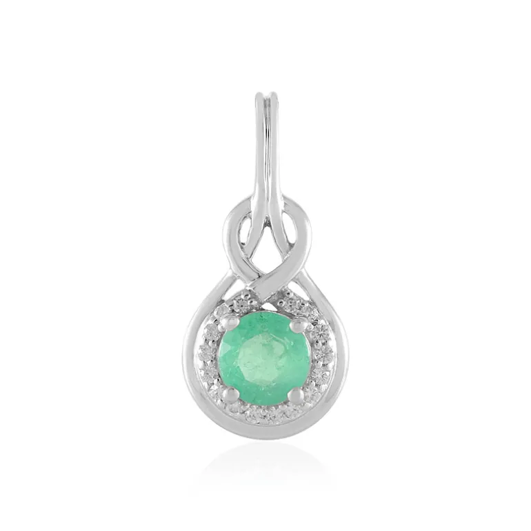 Entdecken Sie die Eleganz dieses exquisiten russischen Smaragdanhängers. Er ist aus 925er Sterlingsilber gefertigt und mit einem 0,443-karätigen Smaragd veredelt, der von 16 kambodschanischen Zirkonen akzentuiert wird. Dieser Anhänger ist ideal, um jedem Outfit einen Hauch von Raffinesse zu verleihen und eignet sich sowohl für Freizeitkleidung als auch für besondere Anlässe. Ein zeitloses Stück, das Ihre Schmucksammlung mühelos aufwertet.