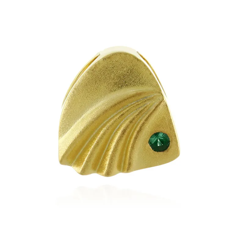 Entdecken Sie die Faszination dieses eleganten Anhängers mit einem kostbaren russischen Smaragd von 0,111 Karat im Rundschliff, gefasst in vergoldetem 925er Sterlingsilber. Mit einem Gewicht von ca. 8,25 g strahlt dieser Anhänger Raffinesse und einen Hauch von grünem Glamour aus. Die einzigartige Oberflächenstruktur bildet einen funkelnden Hintergrund für den Edelstein und macht ihn zu einem vielseitigen Accessoire, das sowohl im Alltag als auch zu besonderen Anlässen getragen werden kann. Kombinieren Sie es mit einer klassischen Bluse für die Arbeit, oder werten Sie ein kleines schwarzes Kleid für einen Abend auf.