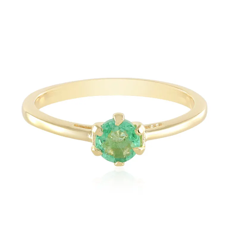 Entdecken Sie die Faszination russischer Edelsteine mit diesem bezaubernden Smaragdring. Ein kostbarer 0,363-karätiger Smaragd im Rundschliff sitzt in der Mitte eines exquisit vergoldeten 925er Sterlingsilberbandes. Der subtile Farbton des Edelsteins verleiht jedem Outfit einen Hauch von Eleganz und macht ihn zu einem idealen Accessoire für den Tag und den Abend. Dieser Ring mit einem Gesamtgewicht von 0,363 Karat passt gut zu minimalistischer Kleidung und lässt das leuchtende Grün des russischen Smaragds als Ausdruck von Raffinesse hervortreten.