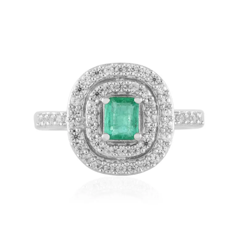 Entdecken Sie die Eleganz eines russischen Smaragds im wunderschönen Achteckschliff, umgeben von schimmernden Zirkonen aus Kambodscha. Gefertigt aus 925er Sterlingsilber mit einer polierten Platinbeschichtung verkörpert dieser Ring Raffinesse. Er ist ideal für besondere Anlässe und lässt sich wunderbar mit Abendgarderobe kombinieren und verleiht jedem Outfit einen Hauch von Luxus. Werten Sie Ihre Schmucksammlung mit diesem exquisiten Stück auf.