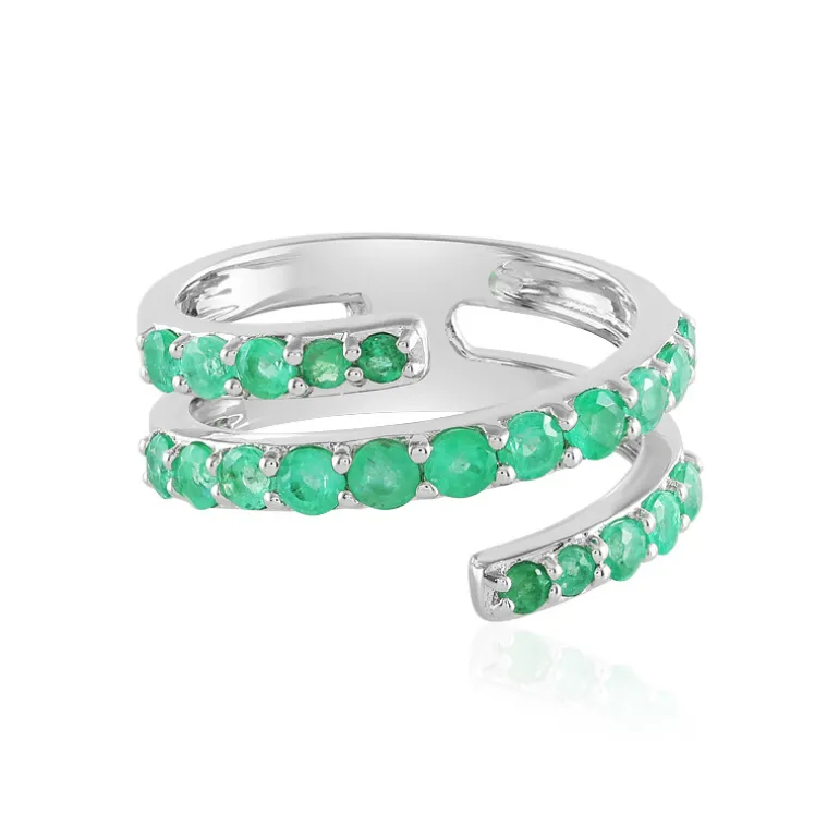 Entdecken Sie die Faszination des russischen Erbes mit diesem atemberaubenden Ring aus 925er Sterlingsilber, der für zusätzlichen Glanz plattiert wurde. Insgesamt 1,259 Karat russischer Smaragde umschließen Ihren Finger und bringen die Eleganz der Natur in Ihr Ensemble. Die Edelsteine im Rundschliff fangen das Licht ein und das offene Banddesign verleiht klassischem Luxus eine moderne Note. Dieser Ring ist sowohl für den eleganten Tag als auch für den glamourösen Abend geeignet und verspricht eine vielseitige Ergänzung Ihrer Schmucksammlung zu werden.