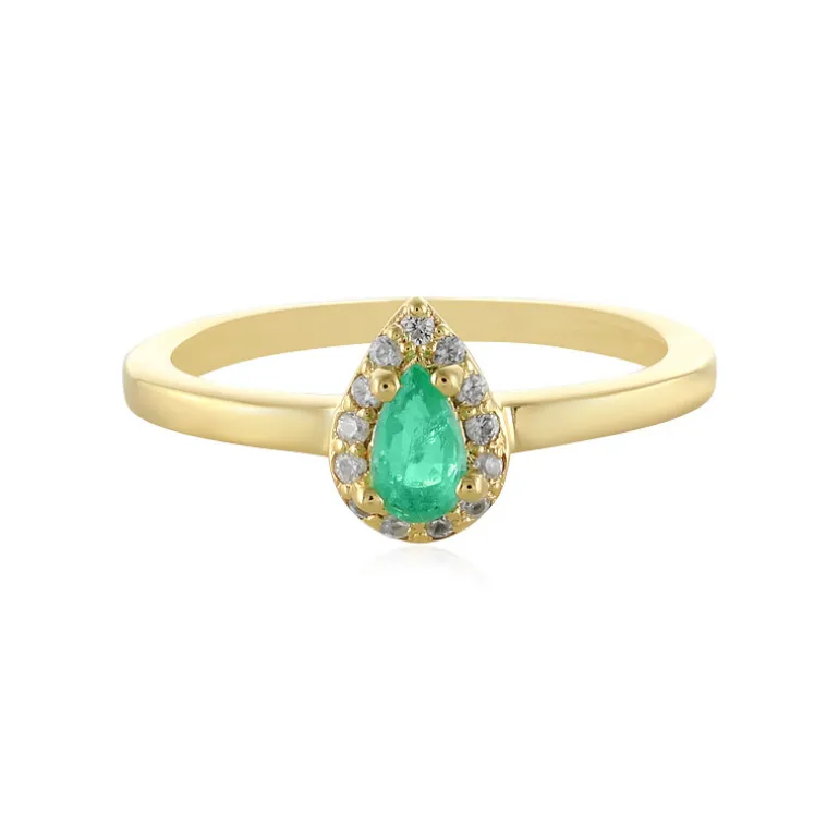 Tauchen Sie ein in die üppige grüne Pracht dieses Rings mit russischem Smaragd, der von schimmernden Zirkonen aus Kambodscha von insgesamt 0,112 Karat ergänzt wird. Der 0,245-karätige Smaragd ist in einer tropfenförmigen Fassung gefasst, um seine Anziehungskraft zu verstärken, und wird von einem funkelnden Heiligenschein umgeben. Das Schmuckstück aus 925er Sterlingsilber mit aufwändiger Goldplattierung wiegt etwa 1,7 g. Er eignet sich sowohl für den lässigen Chic als auch für die Eleganz des Abends und verspricht, eine vielseitige Ergänzung Ihrer Schmucksammlung zu sein. Mit seinen Maßen von 21×19 mm ist er ein Ausdruck zeitloser Raffinesse.