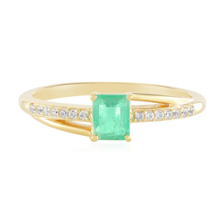 Dieser atemberaubende Ring zeigt einen russischen Smaragd, der fachmännisch in einem achteckigen Stufendesign geschliffen und in glänzendes vergoldetes 925er Sterlingsilber gefasst ist. Ergänzt durch 14 funkelnde kambodschanische Zirkone bietet dieses Schmuckstück ein Gesamtkaratgewicht von 0,474. Er eignet sich sowohl für legere als auch für elegante Anlässe und lässt sich mühelos mit Abendkleidern oder eleganter Freizeitkleidung kombinieren und verleiht jedem Outfit einen Hauch von Raffinesse.