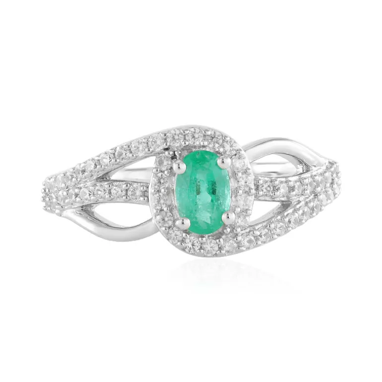 Unser fesselnder Russischer Smaragd Silberring ist eine nahtlose Mischung aus klassischer Eleganz und modernem Charme. Der ovale russische Smaragd von 0,384 Karat, der von 52 runden kambodschanischen Zirkonen umgeben ist, schimmert auf einem Band aus platiniertem 925er Sterlingsilber. Dieser Ring ist perfekt für jeden Anlass und wertet sowohl legere als auch formelle Outfits mühelos auf.
