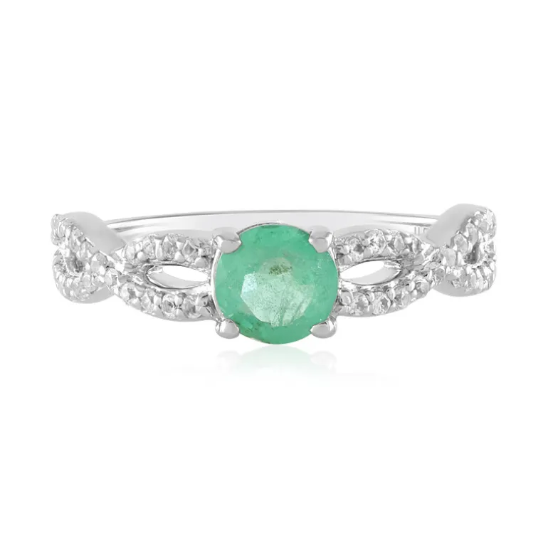Entdecken Sie den Charme dieses Rings mit einem russischen Smaragd von 0,676 Karat im Rundschliff, gefasst in glänzendes, rhodiniertes Sterlingsilber. Akzentuiert durch 44 weiße Saphire im Brillantschliff aus Madagaskar, funkelt dieser Ring mit Eleganz. Er eignet sich perfekt für eine raffinierte Abendveranstaltung oder als auffälliges Accessoire für jeden Tag. Kombinieren Sie ihn mit einem fließenden Kleid oder einem maßgeschneiderten Anzug, um Ihr Ensemble aufzuwerten.