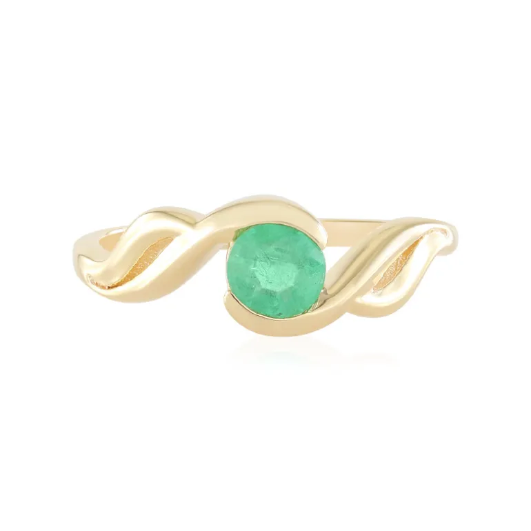 Entdecken Sie die Eleganz dieses exquisiten russischen Smaragdrings mit einem 0,376 Karat großen Edelstein im Rundschliff, gefasst in vergoldetem 925er Sterlingsilber. Das einzigartige Wellendesign verleiht ihm Raffinesse und macht ihn zu einem schicken Accessoire für jeden Anlass. Dieser Ring ist eine vielseitige Wahl für alle, die einen raffinierten Stil zu schätzen wissen. Er lässt sich perfekt mit formeller Kleidung kombinieren oder wertet das tägliche Tragen auf.
