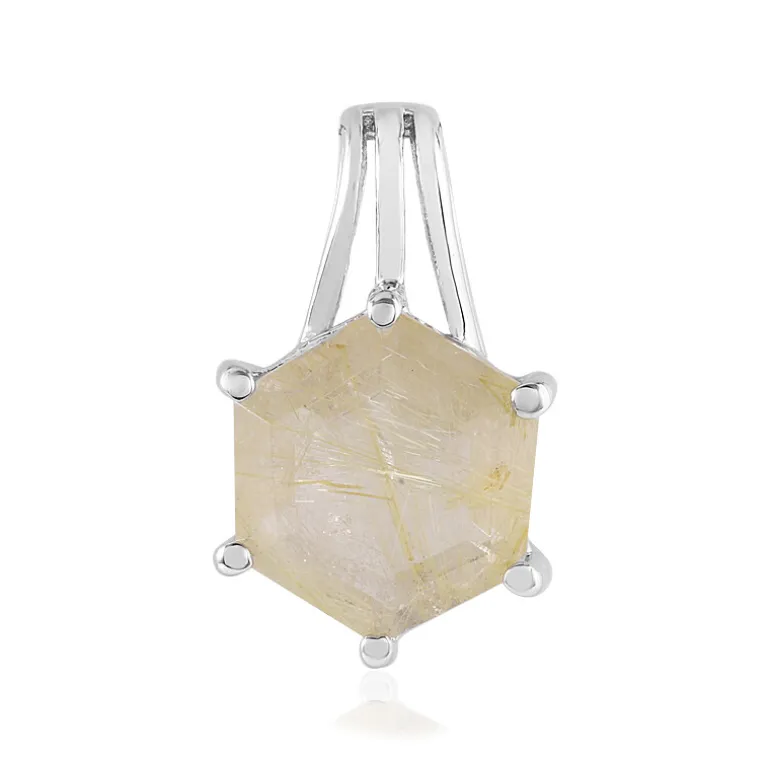 Unser Anhänger aus brasilianischem Rutilquarz im Sechseck-Schliff verleiht Ihnen einen Hauch von himmlischer Schönheit. Mit einem leuchtenden Stein von 3,621 Karat, gefasst in fein verarbeitetem, platiniertem 925er Sterling Silber, strahlt dieser Anhänger Eleganz aus. Mit einer Größe von 19 x 11 mm ist er ein vielseitiges Schmuckstück, das Ihr Ensemble bei jeder Gelegenheit aufwertet – ideal, um sowohl der Tages- als auch der Abendgarderobe ein subtiles Statement zu verleihen.