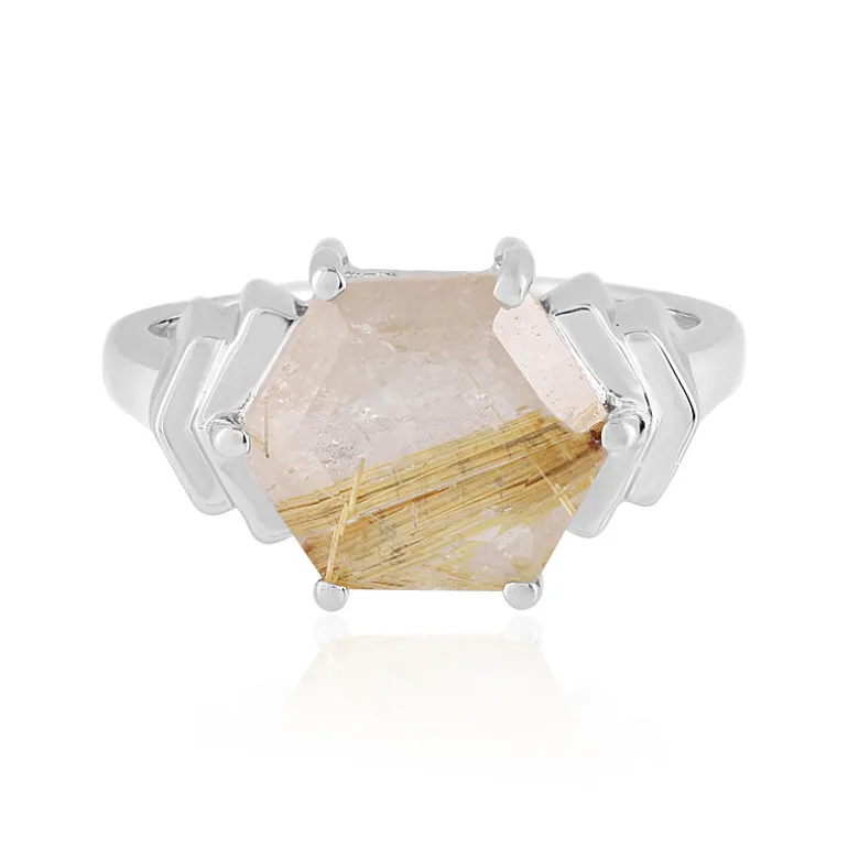 Entdecken Sie den bezaubernden Charme dieses Ringes aus brasilianischem Rutilquarz, der eine harmonische Mischung aus natürlicher Eleganz und modernem Design darstellt. Der seltene Edelstein im Hexagon-Schliff von 3,621 Karat besticht durch seine einzigartigen goldenen, nadelartigen Einschlüsse. Das 925er Sterlingsilber, das mit einer Platinbeschichtung veredelt wurde, umschließt den Quarz auf elegante Art und Weise und sorgt für Langlebigkeit und einen Hauch von Raffinesse. Dieser Ring eignet sich sowohl für besondere Anlässe als auch für das tägliche Tragen und ist eine vielseitige Ergänzung für jede Garderobe. Er lädt zu Komplimenten ein und ist ein exquisiter Gesprächsanlass. Kombinieren Sie ihn mit einem schlichten, monochromen Outfit, um seine natürliche Schönheit zur Geltung zu bringen.