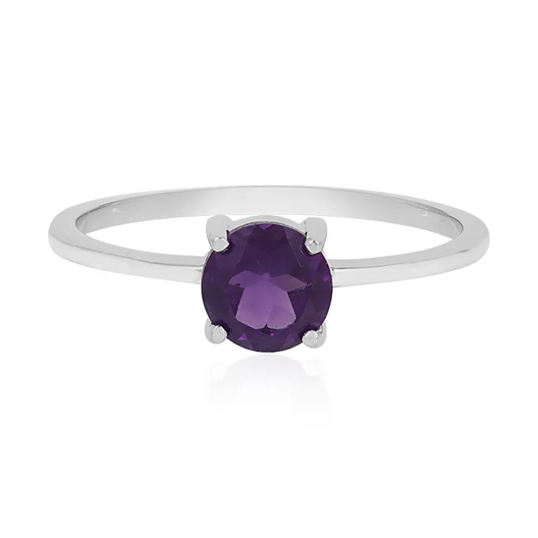 Entdecken Sie die ruhige Schönheit dieses Rings mit einem Sambia-Amethysten, der im Rundschliff geschliffen ist und durch seinen tiefvioletten Farbton besticht. Der Ring ist aus 925er Sterlingsilber mit einer hochglänzenden Platinoberfläche gefertigt und wiegt etwa 1,16 Gramm, was ihn leicht und langlebig macht. Der Amethyst mit einem Gewicht von 0,739 Karat ist kunstvoll facettiert, um seine natürliche Brillanz zu verstärken und das Licht aus jedem Winkel einzufangen. Dieses exquisite Schmuckstück eignet sich perfekt, um Ihrem Alltagsoutfit einen Hauch von Eleganz zu verleihen oder einen schicken Abendlook zu ergänzen und ist eine vielseitige Ergänzung für jede Schmucksammlung.