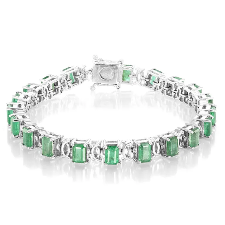 Entdecken Sie den grünen Charme Sambias mit diesem exquisiten Armband mit 21 Smaragden im Oktagon-Schliff von insgesamt 11,76 Karat, die sorgfältig in glänzendes 925er Sterlingsilber gefasst sind. Der tiefgrüne Farbton der Smaragde in Kombination mit dem eleganten Design macht dieses Stück zu einer zeitlosen Ergänzung für jede Sammlung. Dieses 18,5 cm lange Armband ist perfekt, um sowohl am Tag als auch am Abend einen Hauch von Raffinesse zu zeigen.