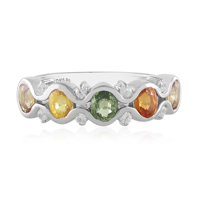 Entdecken Sie die Faszination der Saphire aus Madagaskar mit diesem raffinierten Ring aus Sterlingsilber. Mit fünf lebhaften ovalen Saphiren und funkelnden runden Zirkon-Akzenten bietet dieses Stück insgesamt 1,193 Karat an Eleganz. Dieser Ring ist ideal, um jedem Outfit einen Hauch von Farbe zu verleihen – vom legeren Brunch bis zur Abendveranstaltung – und verbindet mühelos zeitlosen Charme mit modernem Stil.