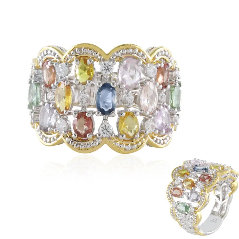 Multicolor Saphir Sterling Silber Ring