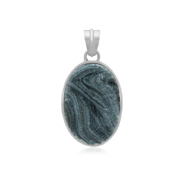 Dieser aus feinstem 925er Sterlingsilber gefertigte und für einen dauerhaften Glanz platinierte Anhänger präsentiert einen wunderschönen brasilianischen Serpentinachat mit 23 Karat. Sein verführerischer ovaler Cabochon-Schliff mit den Maßen von ca. 30 x 20 mm enthüllt faszinierende Strudel von Tiefseetönen, die an das Geheimnis der ozeanischen Tiefen erinnern. Dieser Anhänger ist so konzipiert, dass er ein fester Bestandteil Ihrer Garderobe wird und sowohl zu legeren als auch zu formellen Anlässen perfekt passt. Ob zu einer schlichten Bluse oder einem eleganten Kleid, dieses Schmuckstück wird Sie begeistern und jedem Look einen Hauch von Klasse verleihen.