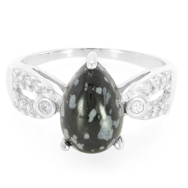 US Snowflake Obsidian Tropfen Silber Ring, 2,82ct