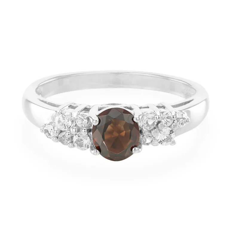 Dieser schicke Ring aus 925er Sterlingsilber präsentiert einen verlockenden 0,72-karätigen tansanischen Chocolate-Zirkon im Ovalschliff für höchsten Glanz. Flankiert von einer Kaskade aus weißem Topas aus Brasilien hat der Ring ein Gesamtgewicht von 0,986 Karat. Sein klassisches Design strahlt einen modernen Charme aus, der sich für jeden Anlass eignet und sowohl zu legeren als auch zu formellen Anlässen passt. Dieses Schmuckstück bringt einen Hauch von Eleganz in Ihr Alltagsoutfit.