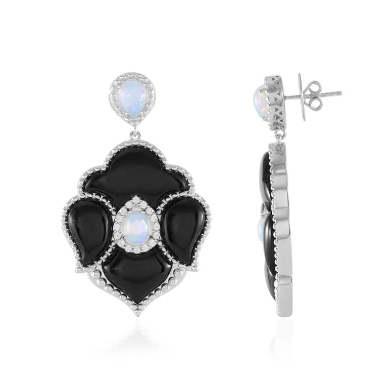 Mit diesen exquisiten, in Sterlingsilber gefassten Ohrringen aus schwarzem Achat können Sie Ihren Stil aufwerten. Das auffällige Design von Dallas Prince Designs zeigt chinesische schwarze Achate, die von funkelnden Zirkonen aus Kambodscha und Welo-Opalen aus Äthiopien umgeben sind. Diese Ohrringe sind perfekt für elegante Abende oder schicke Tageslooks und verleihen jedem Outfit Raffinesse.