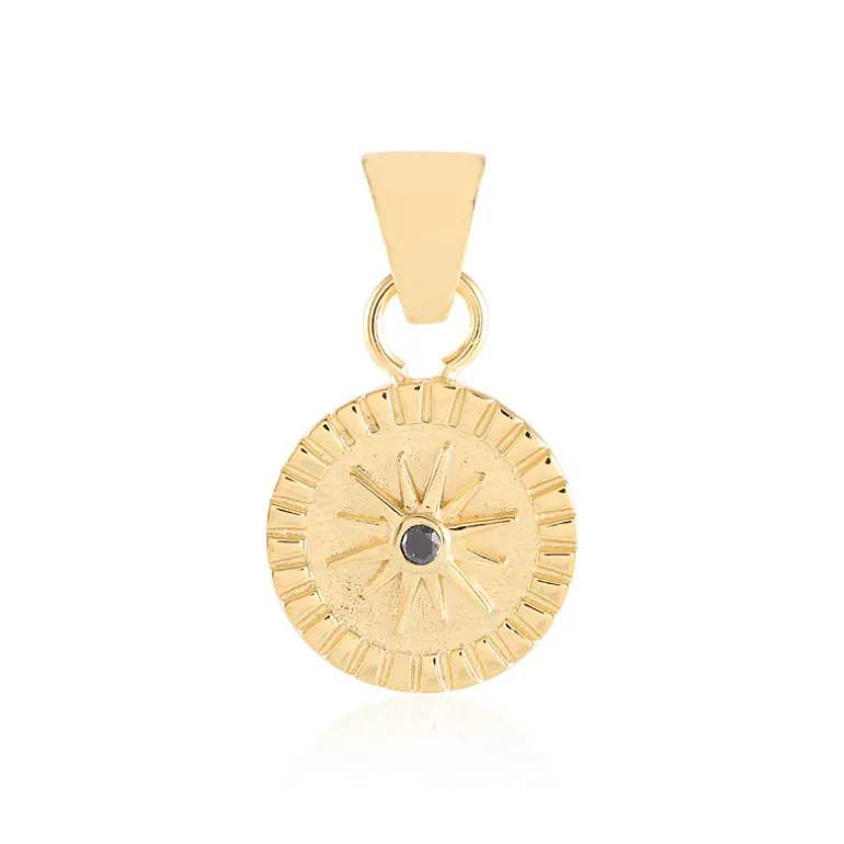 Dieser atemberaubende Anhänger ist mit einem schwarzen Diamanten von 0,127 Karat besetzt, der inmitten einer vergoldeten Messingscheibe sitzt und zeitlose Eleganz ausstrahlt. Mit einem Durchmesser von 38×22 mm zieht der Anhänger das Licht und die Aufmerksamkeit auf sich, was ihn zu einem vielseitigen Schmuckstück für den Alltag und besondere Anlässe macht. Kombinieren Sie diesen Anhänger mit einem klassischen schwarzen Kleid für eine Abendveranstaltung oder einer frischen weißen Bluse für einen gehobenen professionellen Look.