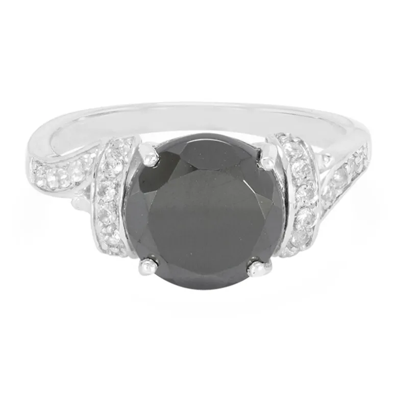 Entdecken Sie die Faszination tiefer Kontraste mit diesem wunderschönen Ring, in dessen Mittelpunkt ein schwarzer Hämatit von 4,3 Karat im Rundschliff aus den USA steht. Der Hämatit ist in 925er Sterlingsilber gefasst und wird von 28 funkelnden weißen Topasen aus Brasilien mit einem Gesamtgewicht von 0,23 Karat akzentuiert, die genau die richtige Menge an Glanz verleihen. Dieses Schmuckstück eignet sich sowohl für zwanglose Anlässe als auch für Abendveranstaltungen. Es passt hervorragend zu einem schicken schwarzen Kleid oder verleiht einer weißen Bluse einen Hauch von Eleganz.
