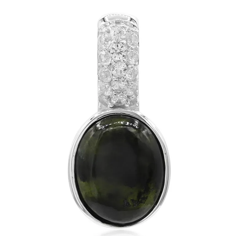 Myanmar Schwarzer Jadeit & Zirkon Silber-Anhänger, 1,4ct