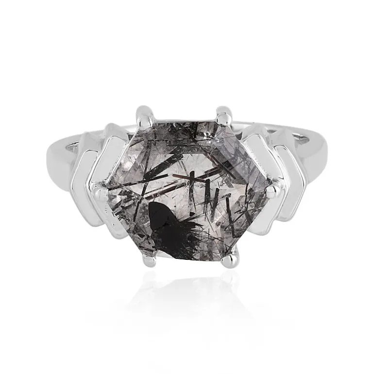 Schwarzer Rutilquarz aus Sri Lanka Ring, 925 Silber, 3,523 ct