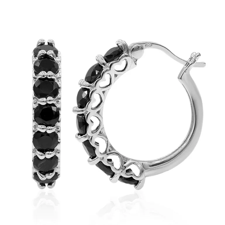 Entdecken Sie die Eleganz dieser atemberaubenden Sterlingsilber-Ohrringe mit 14 schwarzen Spinellen im Rundschliff aus Thailand. Mit einem Gewicht von 3,78 Karat verleihen sie jedem Outfit einen Hauch von Raffinesse. Diese Ohrringe eignen sich perfekt für Abendgarderobe oder anspruchsvolle Anlässe. Mit ihrem einzigartigen Charme und ihren exquisiten Details werten sie sowohl legere als auch formelle Ensembles auf.