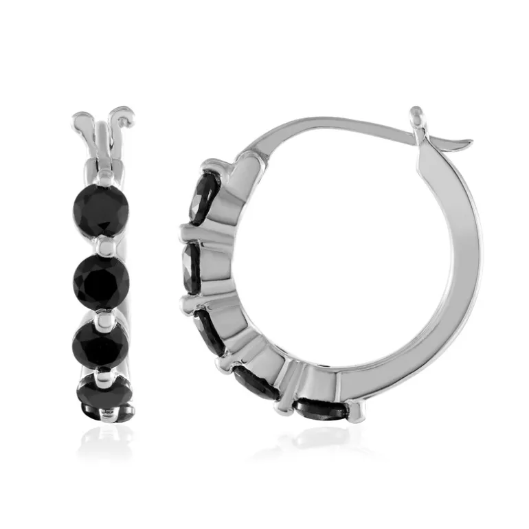 Entdecken Sie die Anziehungskraft dieser schicken Ohrringe mit schwarzem Spinell, die aus 925er Sterlingsilber mit einem eleganten Platin-Finish gefertigt sind. Mit zehn Spinellen im Rundschliff aus Thailand mit insgesamt 1,106 Karat verleihen diese 17 mm großen Ohrringe jedem Outfit einen Hauch von Eleganz. Sie eignen sich sowohl für den Tag als auch für die Nacht und bringen Raffinesse und Stil zu jedem Anlass. Kombinieren Sie sie mit einem kleinen schwarzen Kleid für einen Abend.