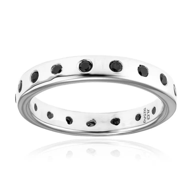 Dieses schlichte Band ist ein Beispiel für zeitlose Eleganz in moderner Form. Er ist aus hochwertigem Sterlingsilber gefertigt und zeigt eine Reihe von fesselnden schwarzen Spinellsteinen, die in seinen glänzenden Umfang eingebettet sind. Dieser Ring eignet sich sowohl für Freizeitkleidung als auch für besondere Anlässe und verleiht jedem Outfit einen Hauch von Raffinesse. Sein vielseitiges Design sorgt dafür, dass er Sie vom Büro bis zur Abendgala mit nahtloser Anmut begleiten kann.