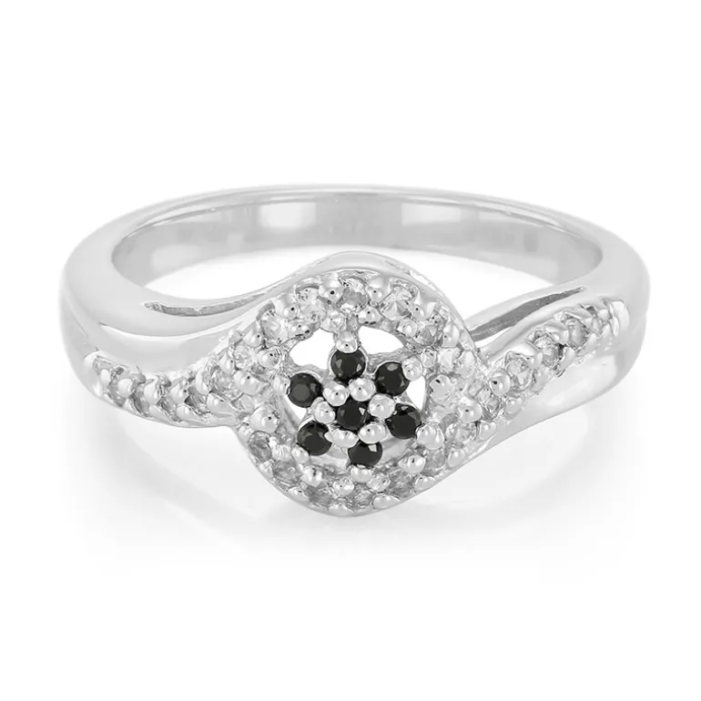 Erfreuen Sie sich an der modernen Ausstrahlung dieses Rings aus Sterlingsilber, der mit einem auffälligen Cluster aus sieben schwarzen thailändischen Spinellen verziert ist. Um die zentralen Edelsteine herum funkeln 24 brasilianische weiße Topase mit einem Gesamtgewicht von 0,218 Karat und bilden einen faszinierenden Kontrast. Das elegante Design mit einem Band aus glänzendem 925er Sterlingsilber und einem Gewicht von ca. 3,35 g macht dieses Schmuckstück zu einer eleganten Wahl für den Tag und die Nacht. Kombinieren Sie es mit Ihrer Lieblings-Bürokleidung oder einem schicken Abend-Ensemble für einen raffinierten Touch.