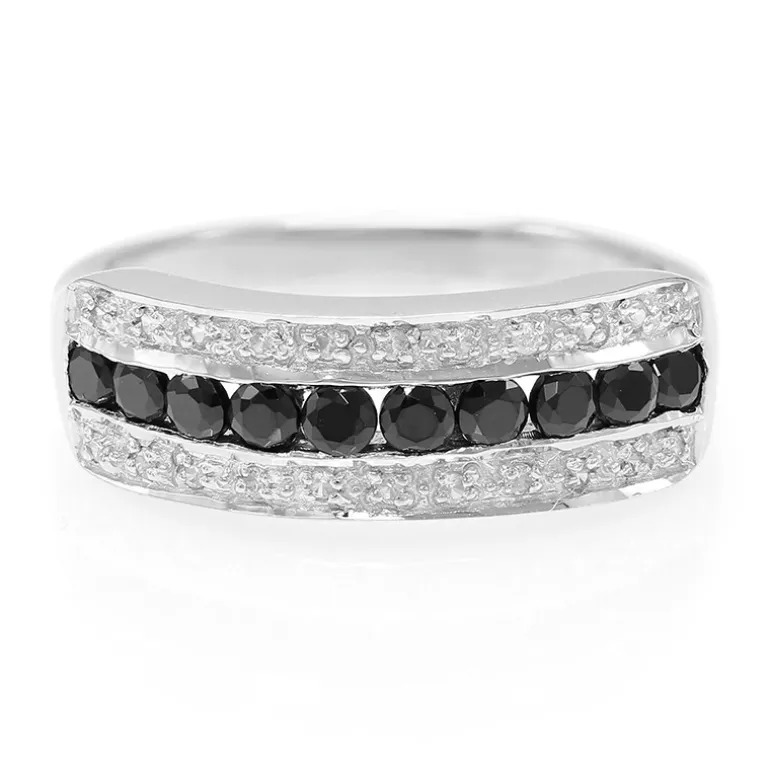 Entdecken Sie die Anziehungskraft dieses faszinierenden Rings mit 10 verführerischen schwarzen Spinellen aus Thailand und 22 funkelnden Zirkonen aus Kambodscha. Er ist in 925er Sterlingsilber gefasst und hat ein Gesamtkaratgewicht von 0,928 ct. Das elegante Design passt sowohl zu formellen als auch zu legeren Outfits und ist somit die ideale Wahl für jede Gelegenheit, bei der Eleganz im Vordergrund steht.