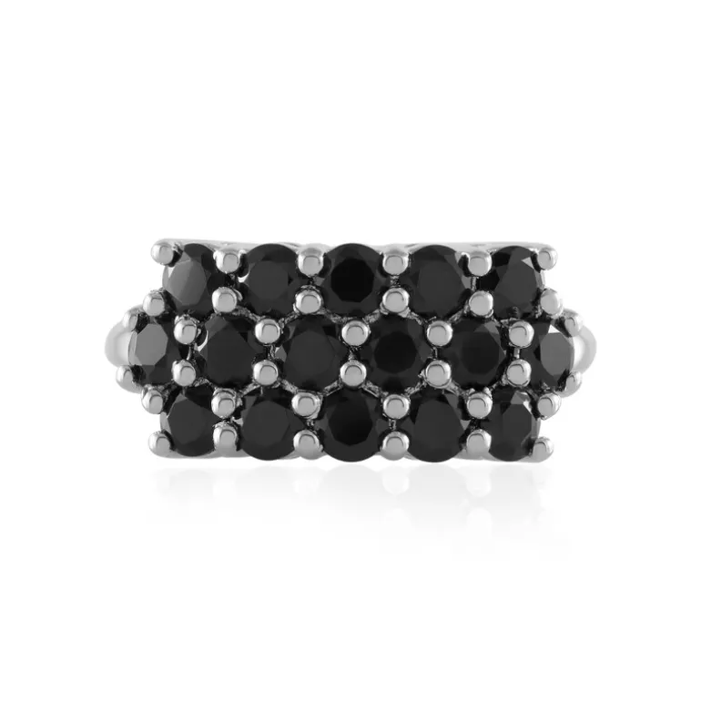 Entdecken Sie die Anziehungskraft dieses bezaubernden Rings mit schwarzem Spinell. Er ist aus 925er Sterlingsilber gefertigt, elegant plattiert und mit 16 schwarzen Spinellen im Rundschliff aus Thailand besetzt. Mit einem Gesamtgewicht von 1,699 Karat ist das gewagte Design perfekt für einen Abend oder eine elegante Veranstaltung. Kombinieren Sie dieses auffällige Stück mit Ihrem kleinen Schwarzen oder einem schicken Abendkleid für einen unvergesslichen Look.