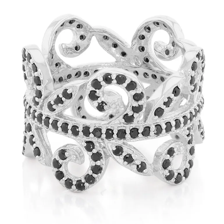 Entdecken Sie die Faszination der Nacht mit diesem filigranen Ring. Er schimmert mit 168 schwarzen thailändischen Spinellen von insgesamt 1,9 Karat und strahlt einen geheimnisvollen Charme aus. Jeder Edelstein wurde fachmännisch in runder Brillantform geschliffen, so dass er aus jedem Blickwinkel funkelt. Gefertigt aus hochwertigem 925er Sterlingsilber und mit einem Gewicht von ca. 5,51 Gramm ist es ein robustes und doch elegantes Stück. Dieser Ring passt perfekt zu einem eleganten Abendkleid oder zu einem raffinierten Business-Outfit und verspricht eine vielseitige Ergänzung Ihrer Schmucksammlung zu werden.