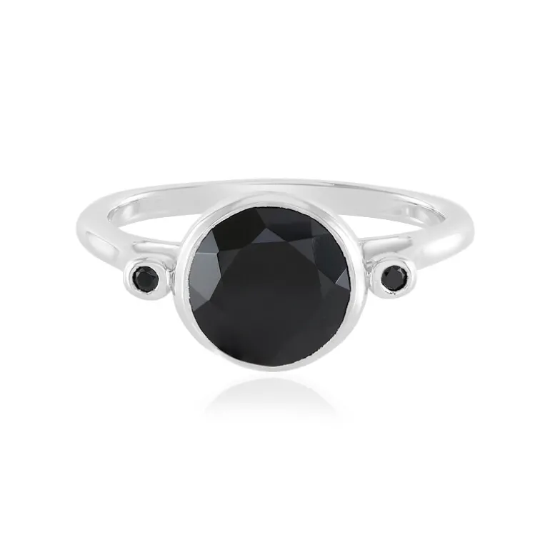 Entdecken Sie die Faszination der Kontraste mit unserem bezaubernden Silberring mit schwarzem Spinell. Die aus den fruchtbaren Ländern Madagaskars stammenden Steine haben insgesamt 4,698 Karat und verströmen einen Hauch von Geheimnis. Das Herzstück, ein großzügiger 10-mm-Rundschliff, wird von zwei zierlicheren Spinellen flankiert, die ein fesselndes Spiel aus Licht und Schatten erzeugen. Gefertigt aus ca. 3,3 Gramm glänzendem 925er Sterlingsilber, passt die Eleganz dieses Rings zu jedem Anlass, von einer formellen Abendveranstaltung bis hin zu einem eleganten Alltagslook.