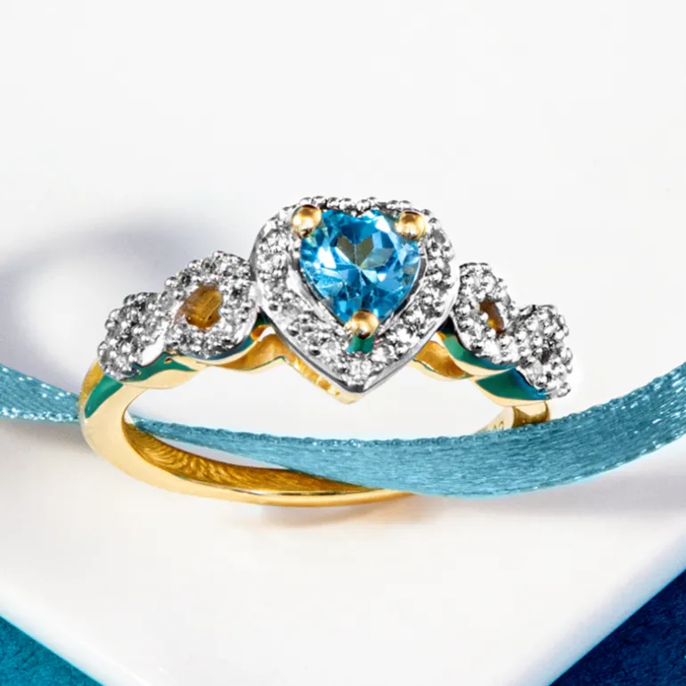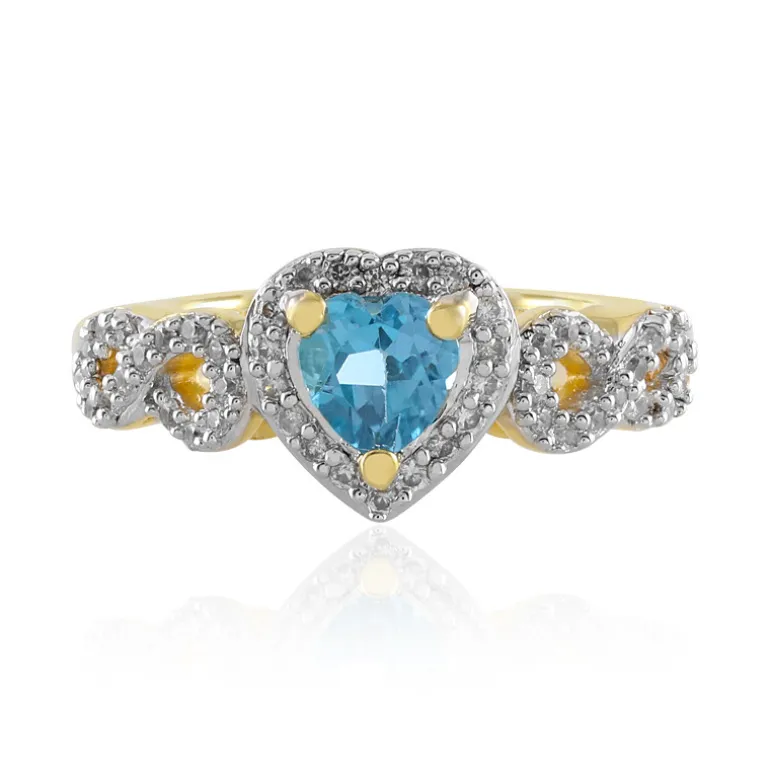 Entdecken Sie die Anziehungskraft dieses Rings aus vergoldetem Sterlingsilber mit einem Schweizer Blautopas in eleganter Herzform. Mit kambodschanischen Zirkonsteinen akzentuiert, strahlt er Raffinesse aus. Dieser Ring eignet sich sowohl für legere als auch für formelle Anlässe und verleiht jedem Outfit einen Hauch von Eleganz. Ideal als romantisches Geschenk oder als persönliches Andenken.