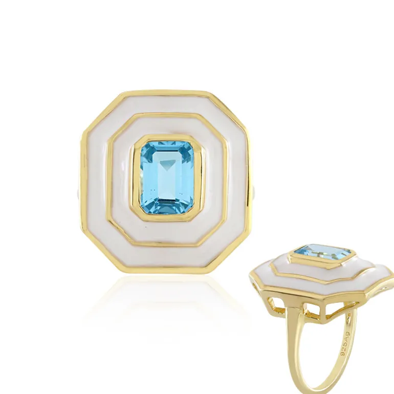 Dieser elegante Schweizer Blautopasring ist mit einem strahlenden 1,7-karätigen Edelstein aus Brasilien besetzt, der in glänzend vergoldetes 925er Sterlingsilber gefasst ist. Der achteckige Stufenschliff des Topas akzentuiert sein Funkeln und macht ihn zu einem reizvollen Blickfang. Das moderne geometrische Design harmoniert mit der achteckigen Silhouette und sorgt für einen modischen Look, der sich perfekt für ein zeitgenössisches Styling eignet. Kombinieren Sie dieses Schmuckstück mit Ihrem Geschäftsoutfit oder einem eleganten Abendkleid für einen Hauch von Raffinesse.