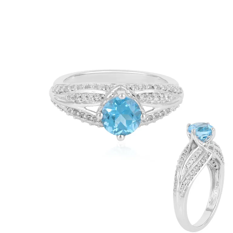 Entdecken Sie die Anziehungskraft des brasilianischen Blautopas, der in diesem Ring aus Sterlingsilber elegant in Szene gesetzt wird. Der zentrale Topas mit einem Gewicht von 0,99 Karat wird von funkelnden Zirkon-Akzenten mit einem Gesamtgewicht von 0,52 Karat umgeben und verbindet raffinierten Stil mit einem Hauch von Exotik. Das Design des Rings zeichnet sich durch einen Halo aus Zirkonen aus, der das leuchtende Blau des Topas hervorhebt und ihm einen Hauch von Raffinesse und Brillanz verleiht. Seine vielseitige Silhouette macht ihn zu einer tadellosen Wahl sowohl für einen legeren Brunch als auch für einen formellen Abend. Lassen Sie dieses bezaubernde Schmuckstück Ihre Hand zieren und Ihrem Ensemble einen Hauch von Farbe und Eleganz verleihen.