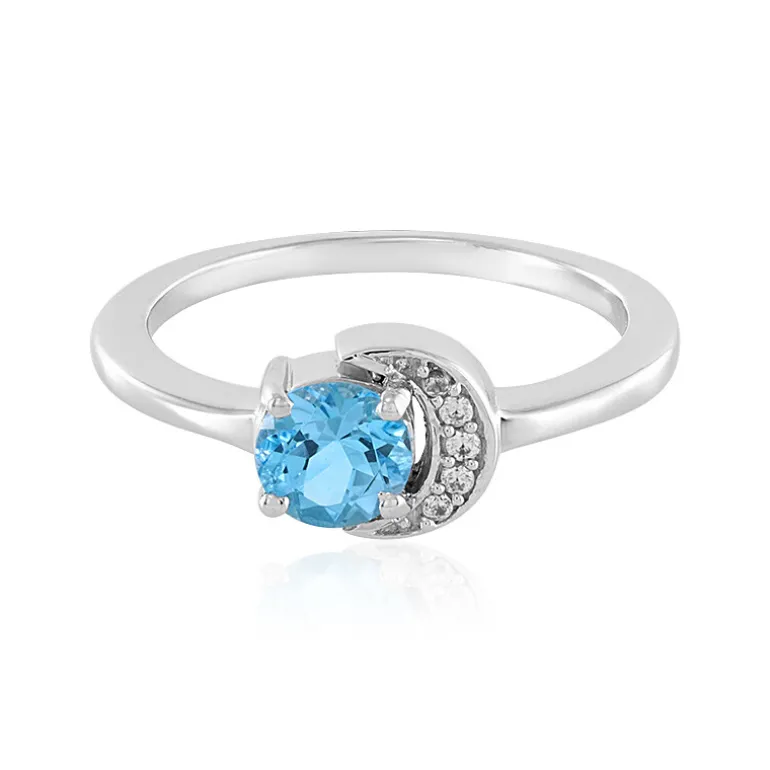 Brasilianischer Blautopas & Zirkon Silberring, 0,567 ct