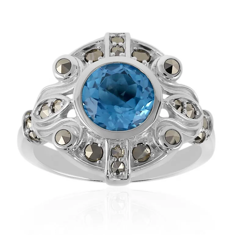 Schweizer Blautopas & Markasit Silberring, 1,4 ct Brasilien