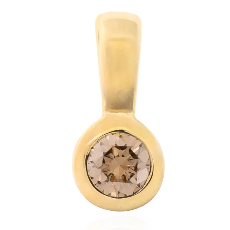 Entdecken Sie die Anziehungskraft von Argyle mit diesem raffinierten 0,25-karätigen champagnerfarbenen Diamantanhänger in 9 K Gelbgold. Sein runder Brillantschliff sorgt für ein funkelndes Strahlen aus jedem Blickwinkel. Dieser aus den berühmten australischen Argyle-Minen stammende Edelstein verleiht Ihrem Stil einen Hauch von Eleganz. Der zarte Champagnerton des Diamanten ist vielseitig und passt sowohl zur Freizeit- als auch zur Abendgarderobe und ist somit eine unverzichtbare Ergänzung für jede Schmucksammlung.