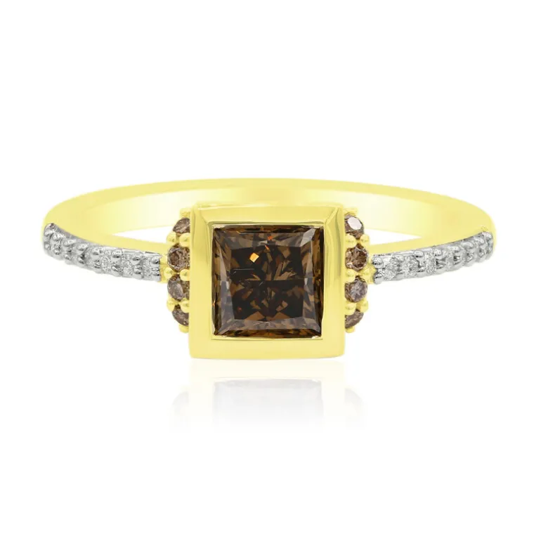Cognac-Diamantring mit Prinzessinnenschliff aus 18 Karat Gold, 0,973ct